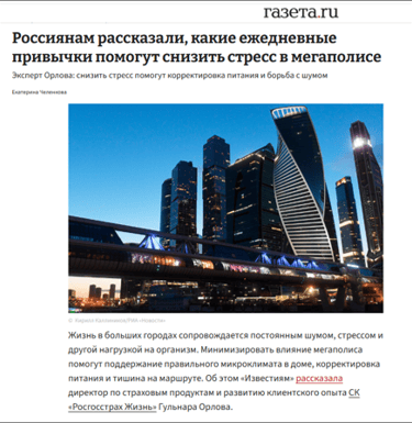 The work with Rosgosstrakh Life, one of the leading life insurance companies in the Russian market, was focused on providing full-scale corporate communications support with a strong emphasis on positioning the company’s experts in the media.